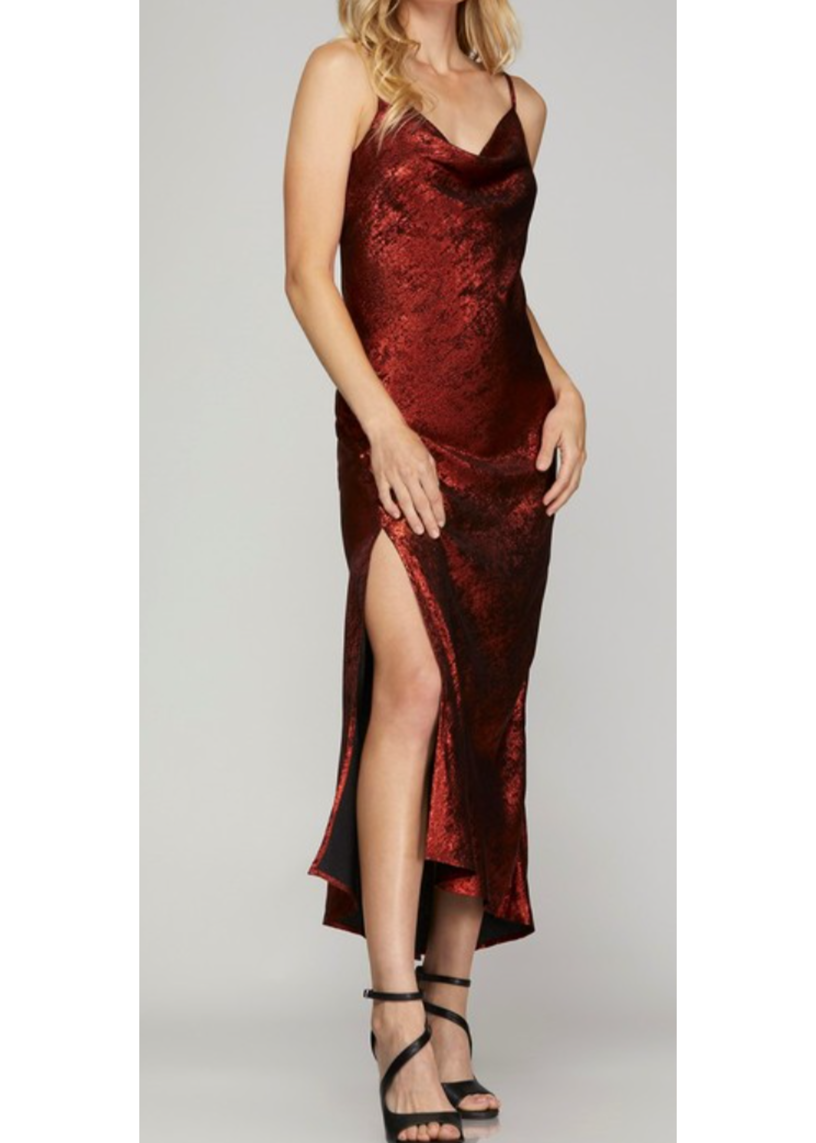 SSSY7676- GLITTER WOVEN COWL NECCK MIDI